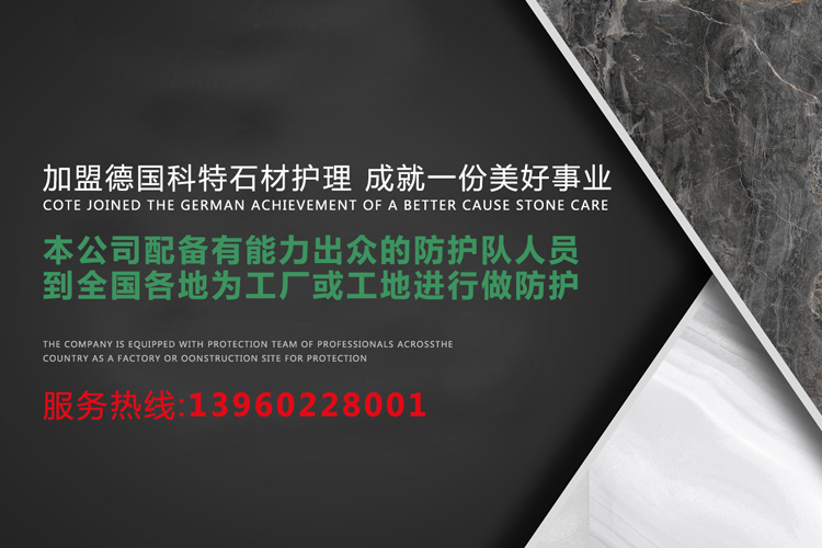 福建泉州科特新材料有限公司(Germany Kurt Ke Te)是德國從事有機氟硅材料研究合成的專業機構。對于一些吸水性基材(石材、磚瓦、混凝土),它讓氟硅元素的有效成分滲透到基材的空隙(毛細管)中,在基材內部形成一個防護層,表面達到防油效果,同時保持石材的透氣性,從而更好的保護石材。此外,防護層還能阻止從石材底部吸收上來的水分,防止石材出現水斑、變色、白華、鐵銹等現象。